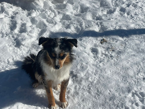 Lemon Bliss, A teeny tiny little package of perfection. Lemon is one of our keeper pups from Maisie & Tiny's litter of 2025. She will likely stay in the toy aussie size category. She is still growing and weighed in at 8.8lbs at 16 weeks. She is an absolute velcro side kick. She is quite possibly one of the snuggliest dogs we've ever had. She is quiet, petite and soft hearted. We absolutely love her gentle personality and kind demeanour. She accompanies us on many activities and is never more than a few steps away. Looking forward to the future with our gorgeous little snuggle bunny.
